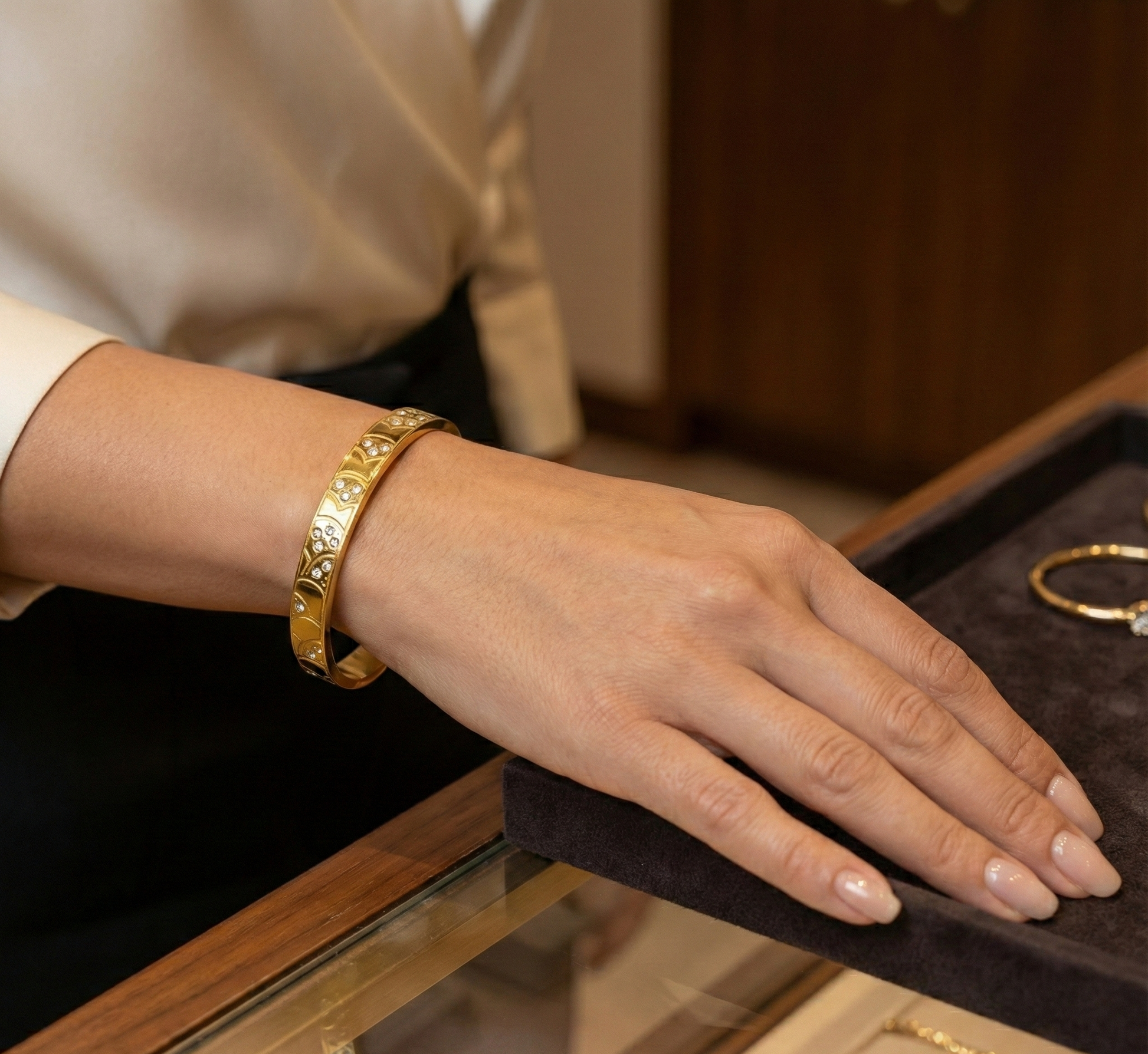 Estética de Lujo: El diseño grabado con láser y las piedras incrustadas ofrecen una apariencia de "Alta Joyería" a un precio accesible y con una vida útil superior.