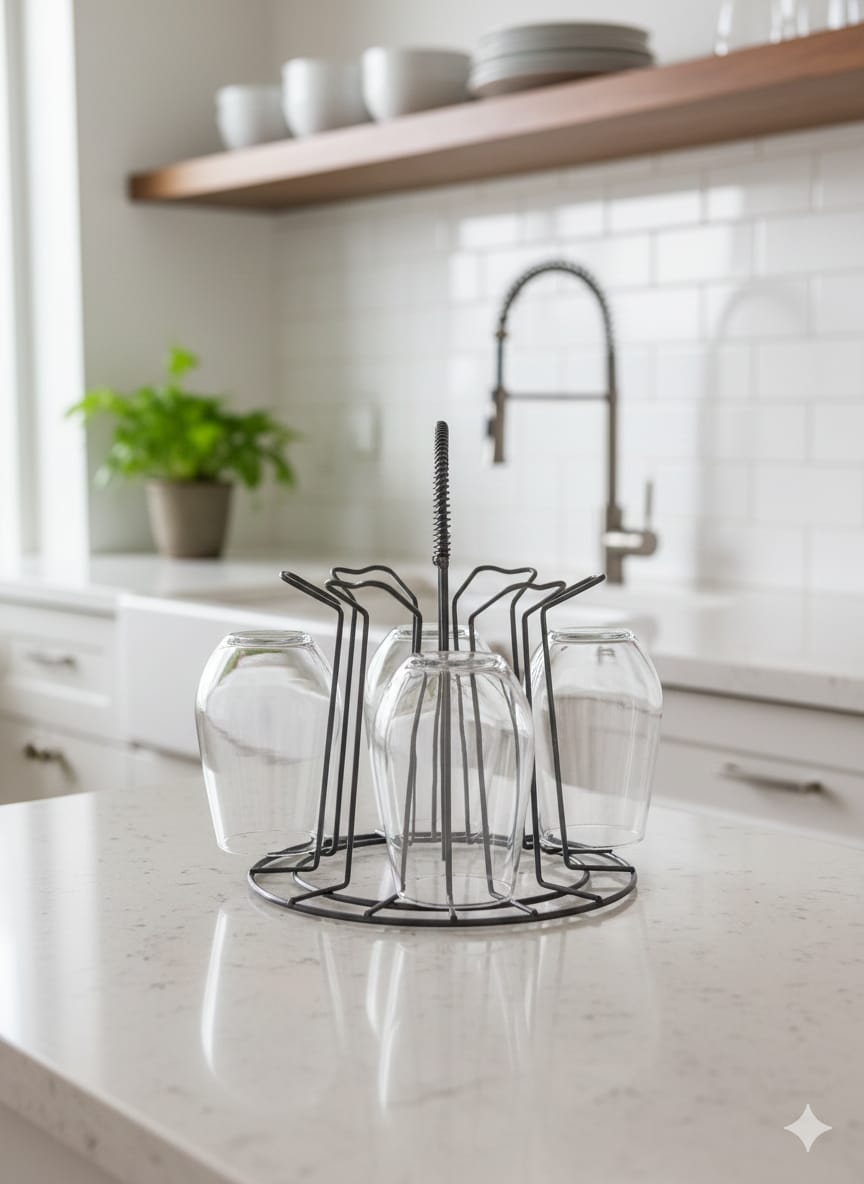 Protección de Cristal: Al mantener las copas boca abajo, se asegura un secado perfecto y se previene que el borde se astille en superficies planas.